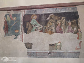 mennyezetén XIV. század közepi, pompázatos freskókat láthatunk. A